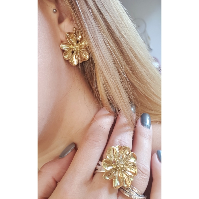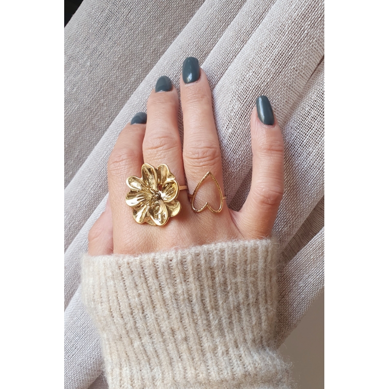 Bague en acier inoxydable composée d'une fleur ressemblant à une aubépine.