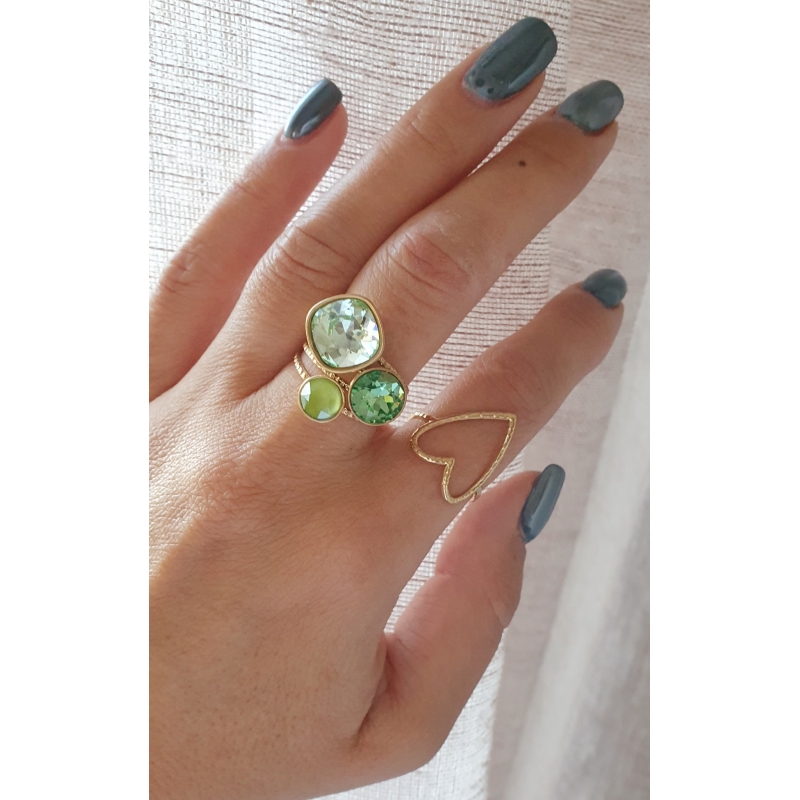 Bague en acier inoxydable composée de trois cristaux taillés.