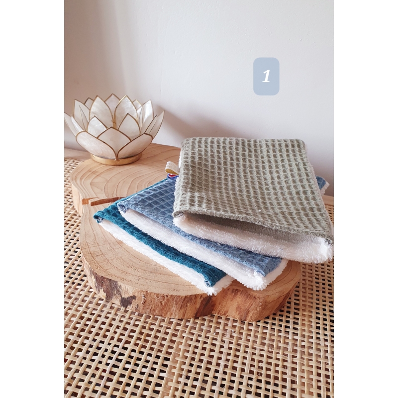 Lot de 3 gants de toilettes adaptés aux petites mains des enfants. Ils pourront se débarbouiller seuls à la fin du repas, et cela va participer à leur autonomie au moment de la douche ! Très utile aussi pour se rincer le visage après le démaquillage, fini l'eau qui éclabousse partout !!