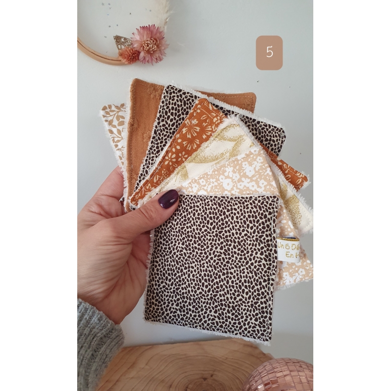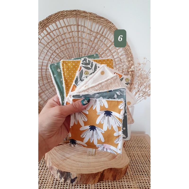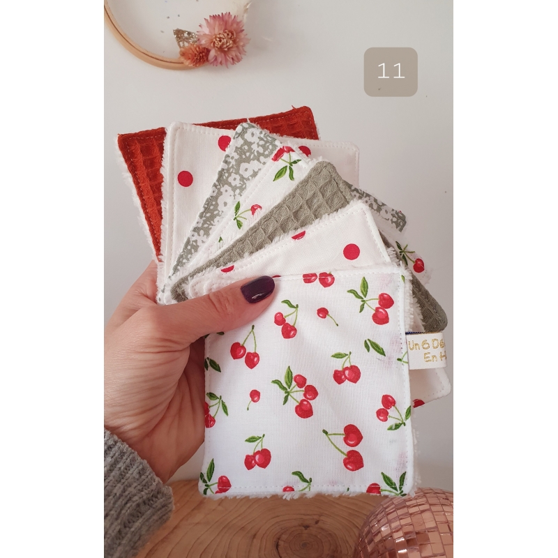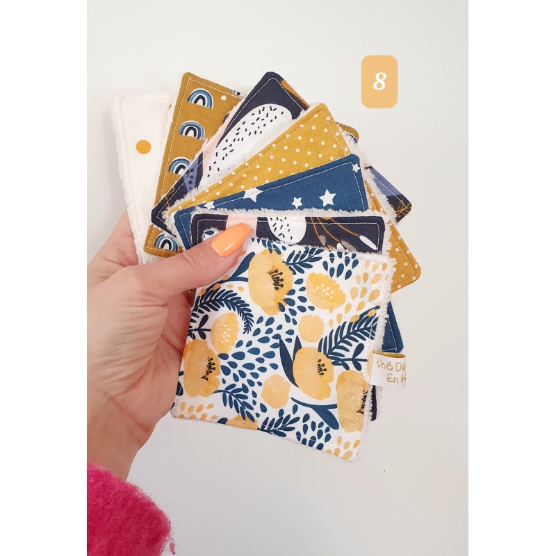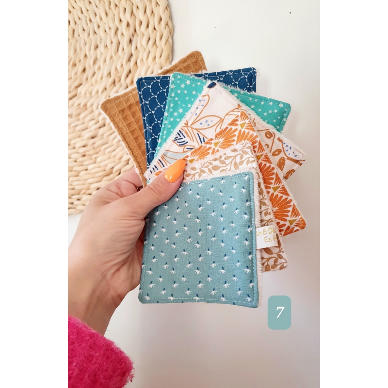 Lot de 7 lingettes en format 10x10 cm. Lot unique réalisé avec des chutes de tissus des précédentes colletions dans une démarche de vider les stocks de tissus.