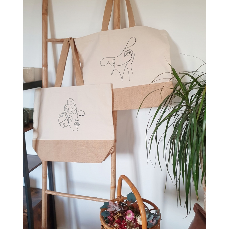 Grand cabas en coton et toile de jute pour faire la belle sur la plage